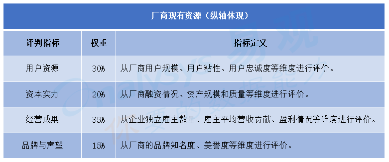 Analysys易觀分析認(rèn)為,從產(chǎn)業(yè)發(fā)展周期來看,中國互聯(lián)網(wǎng)招聘市場目前處于穩(wěn)定發(fā)展階段,在這一階段選取用戶資源、資本實(shí)力、經(jīng)營成果和品牌聲望指標(biāo)來綜合評(píng)價(jià)廠商的現(xiàn)有資源。