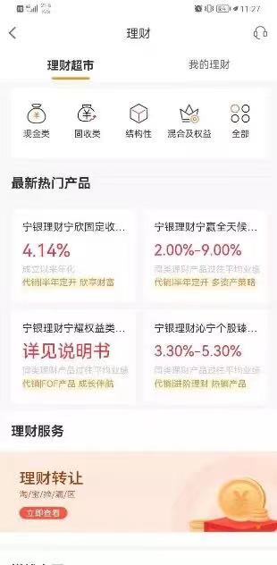 理財(cái)產(chǎn)品分類清晰,推薦產(chǎn)品突出醒目。測(cè)評(píng)版本中設(shè)有獨(dú)立的“理財(cái)”頻道并設(shè)有“理財(cái)超市”,產(chǎn)品分類清晰易懂,且本行主推產(chǎn)品放置頁面醒目位置,當(dāng)個(gè)產(chǎn)品詳情也較為完善,方便用戶自助購(gòu)買。
