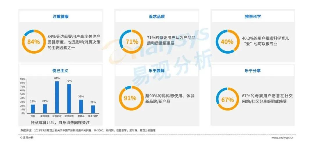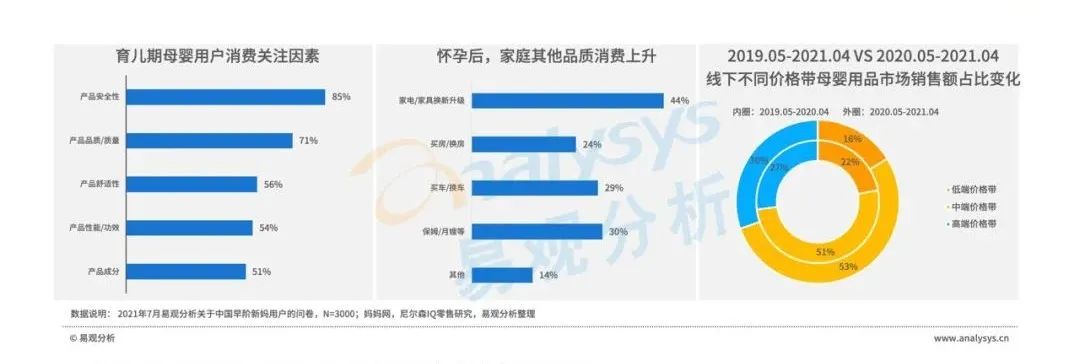 無(wú)論是懷孕期,還是育兒期,產(chǎn)品安全性、品質(zhì)/質(zhì)量都成為母嬰用戶消費(fèi)最關(guān)注因素。此外,產(chǎn)品成分及性能和功效,也成為母嬰用戶消費(fèi)重點(diǎn)關(guān)注因素。